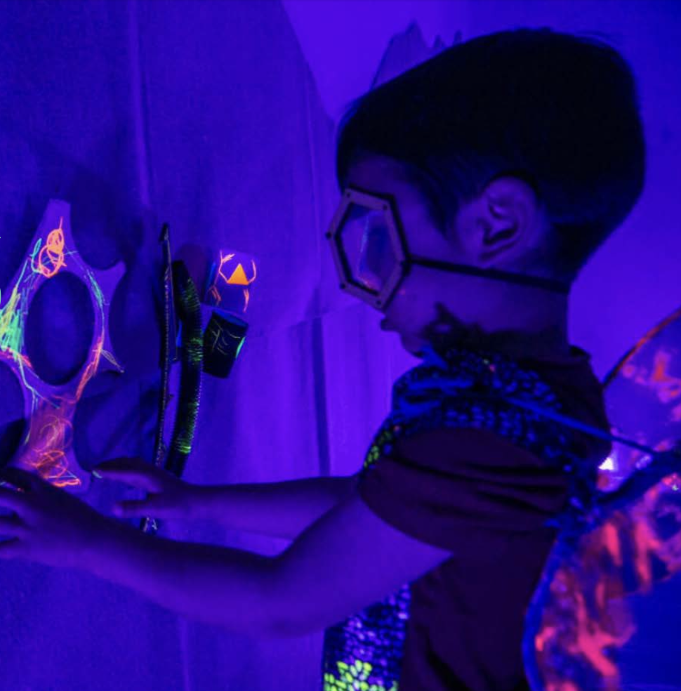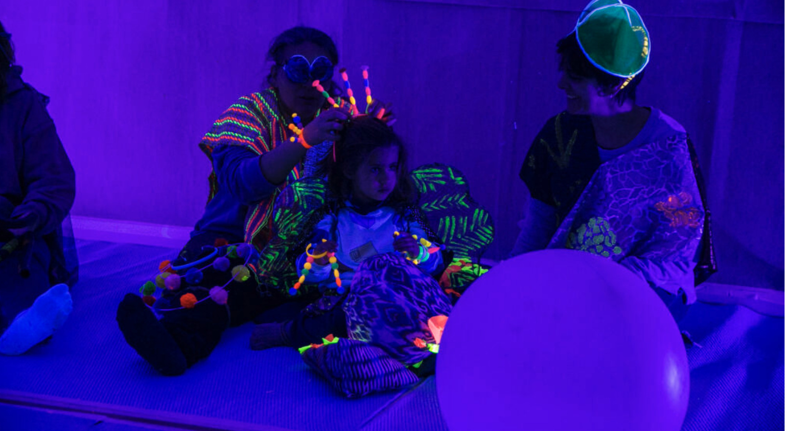 Exploraremos nuestras habilidades corporales a través de juegos de movimiento, descubriremos materiales textiles que nos acompañarán en esta aventura y ayudaremos a crear la flora y la fauna de este pequeño planeta con diversos materiales fluorescentes y fosforescentes.